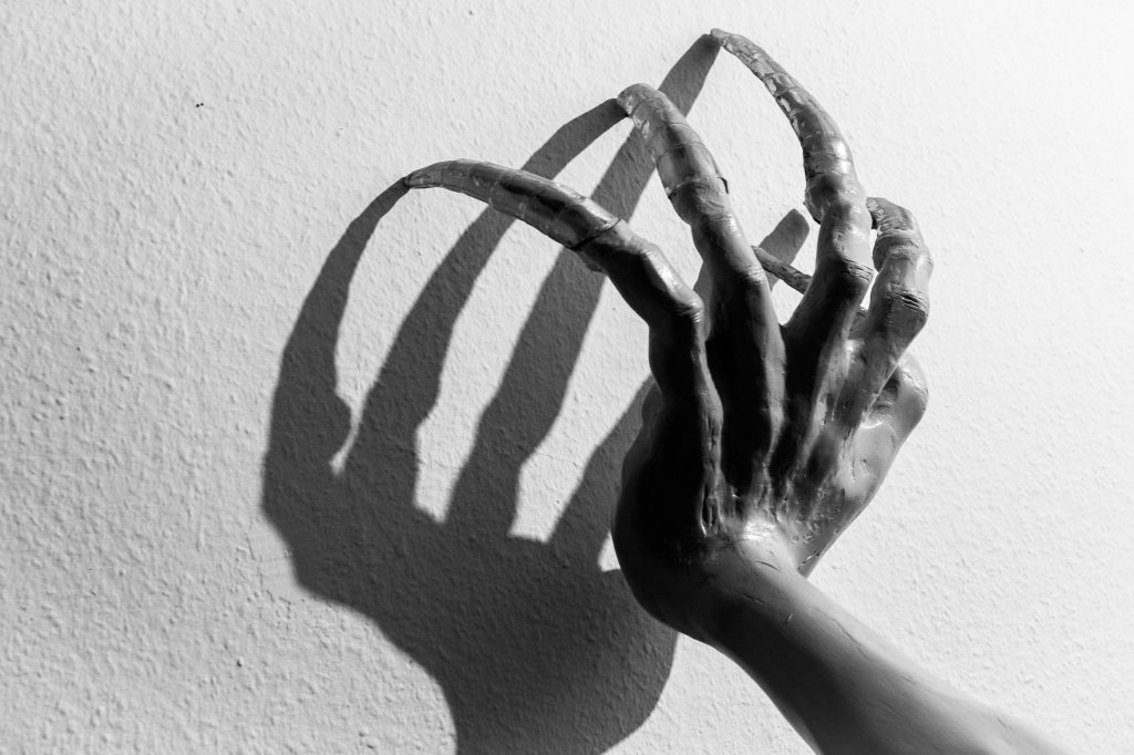 There is an intense determination in the posture, as if every sinew and tendon is straining against an invisible weight. The metallic claws, cold and unyielding, appear ready to dig into whatever surface they encounter, anchoring the figure in place. Yet, there’s a vulnerability in this defensive stance, a silent acknowledgment of struggle. The arm reaches forward with a mixture of resilience and desperation, embodying the paradox of strength under pressure and the relentless drive to persevere.